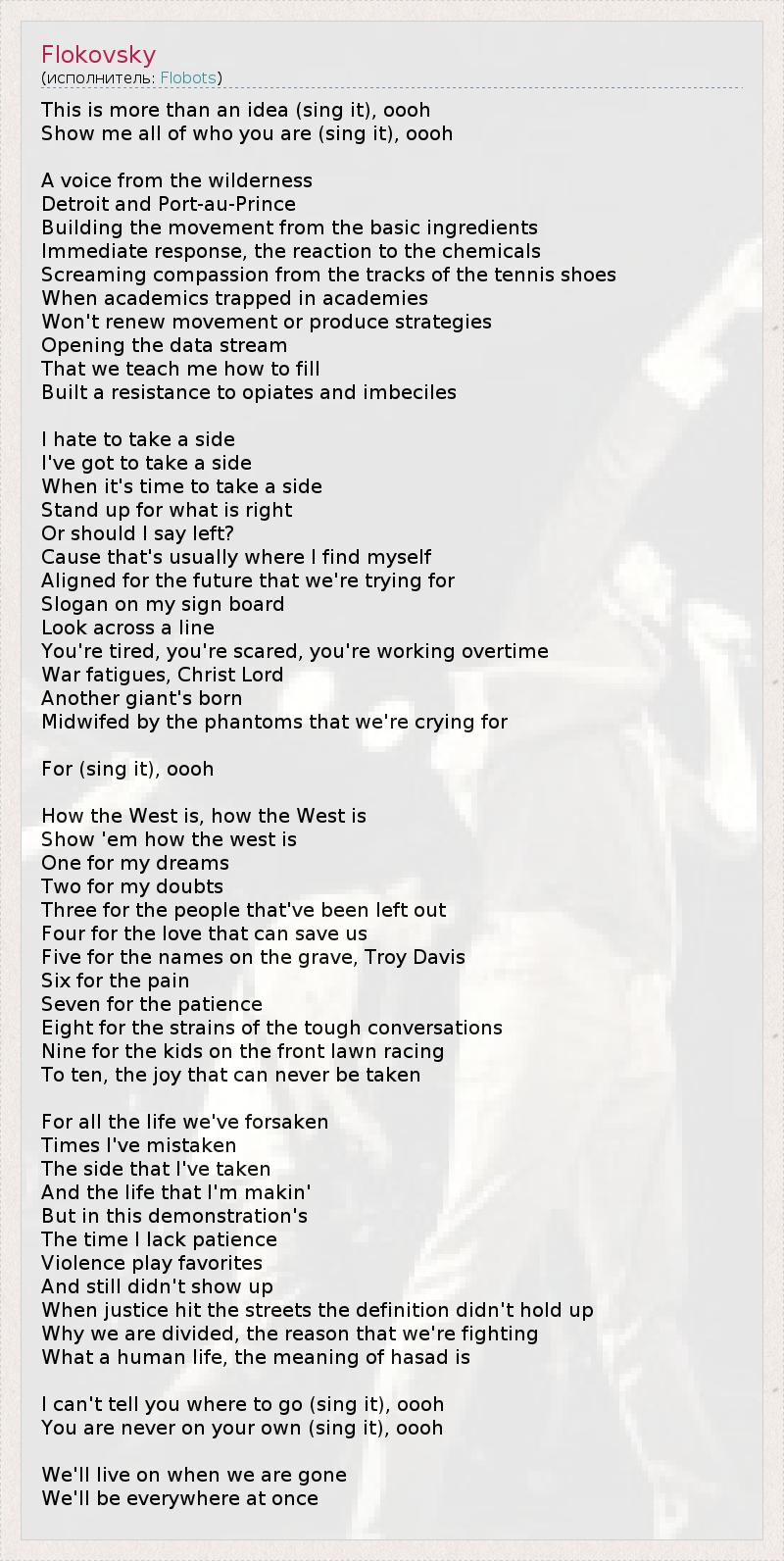 А как ты думаешь, о чем песня "Flokovsky" ?