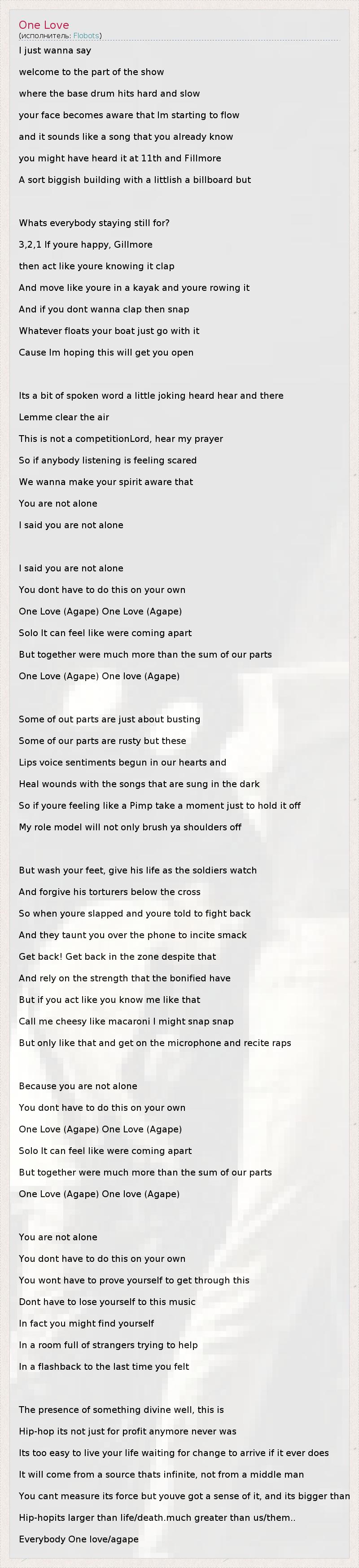 А как ты думаешь, о чем песня "One Love" ?