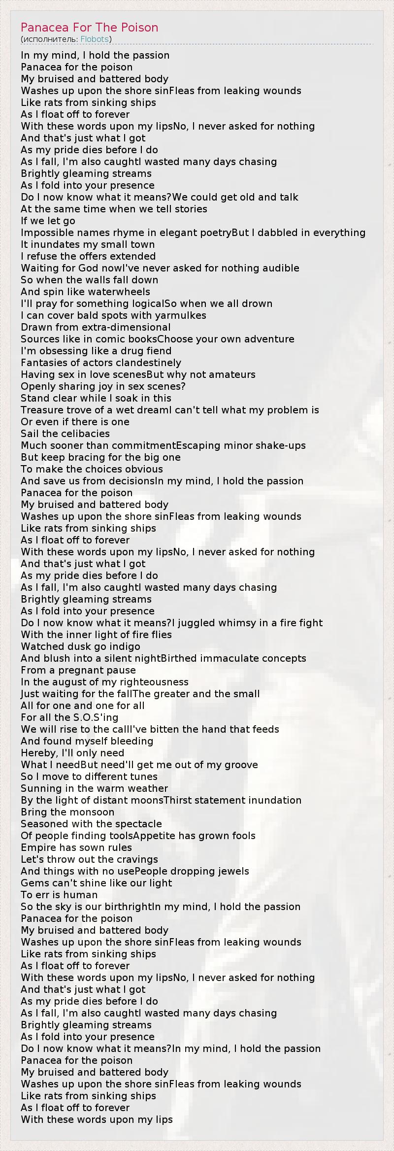 А как ты думаешь, о чем песня "Panacea For The Poison" ?