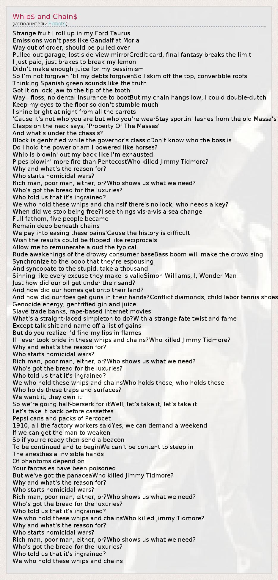 А как ты думаешь, о чем песня "Whip$ and Chain$" ?
