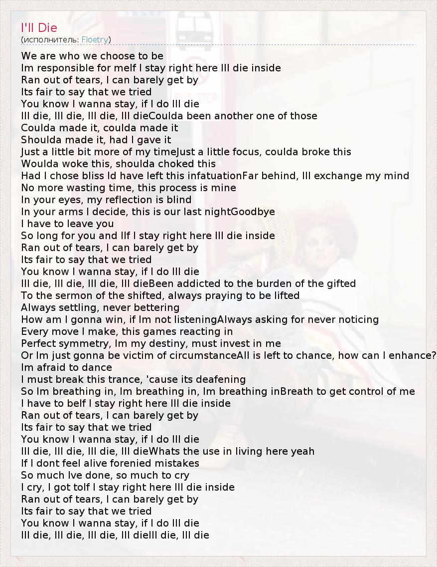 Ill die, Ill die, Ill die, Ill dieIll die, Ill die