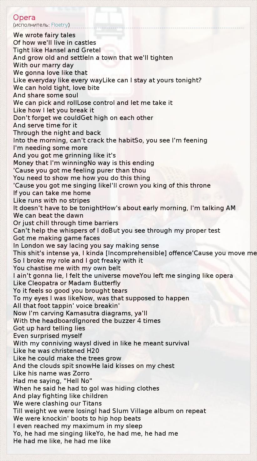 I ain't gonna lie, I felt the universe moveYou left me singing like opera