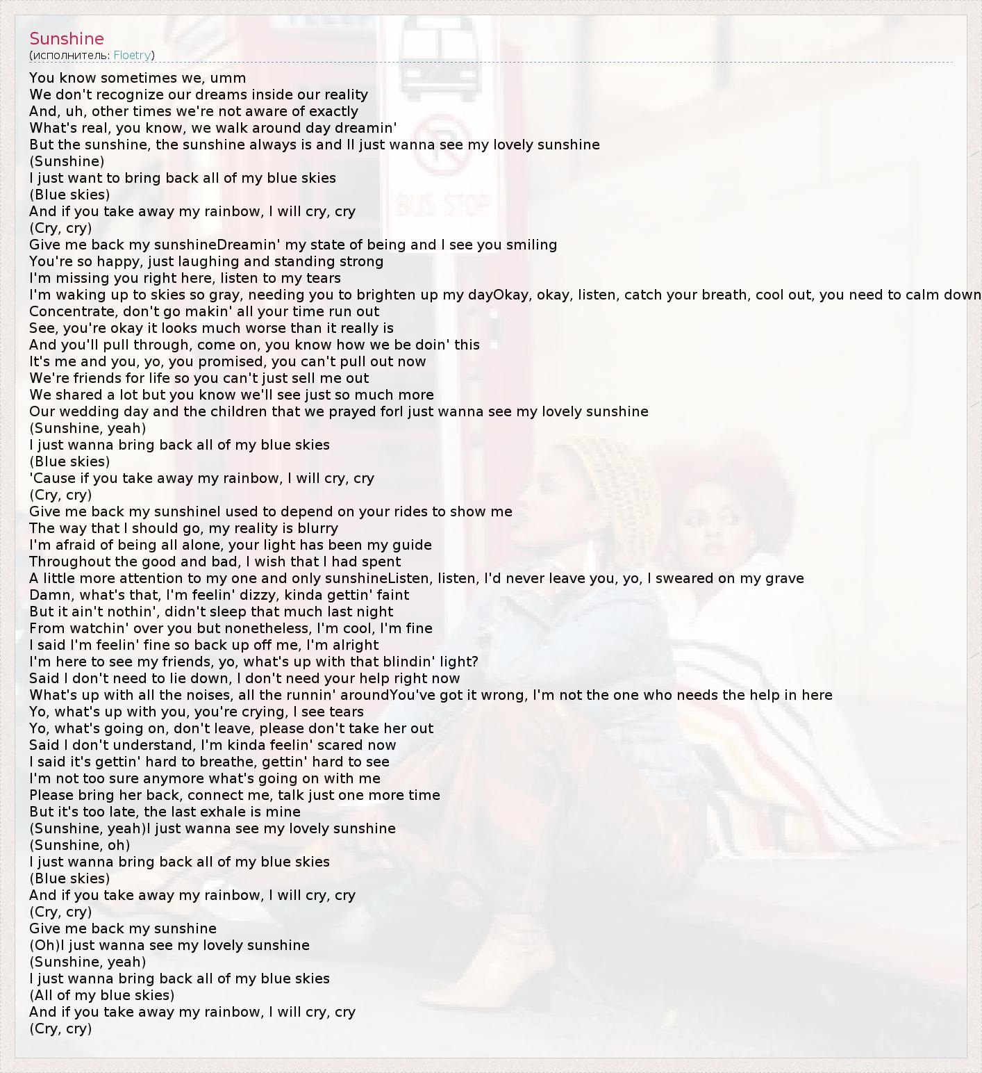 А как ты думаешь, о чем песня "Sunshine" ?