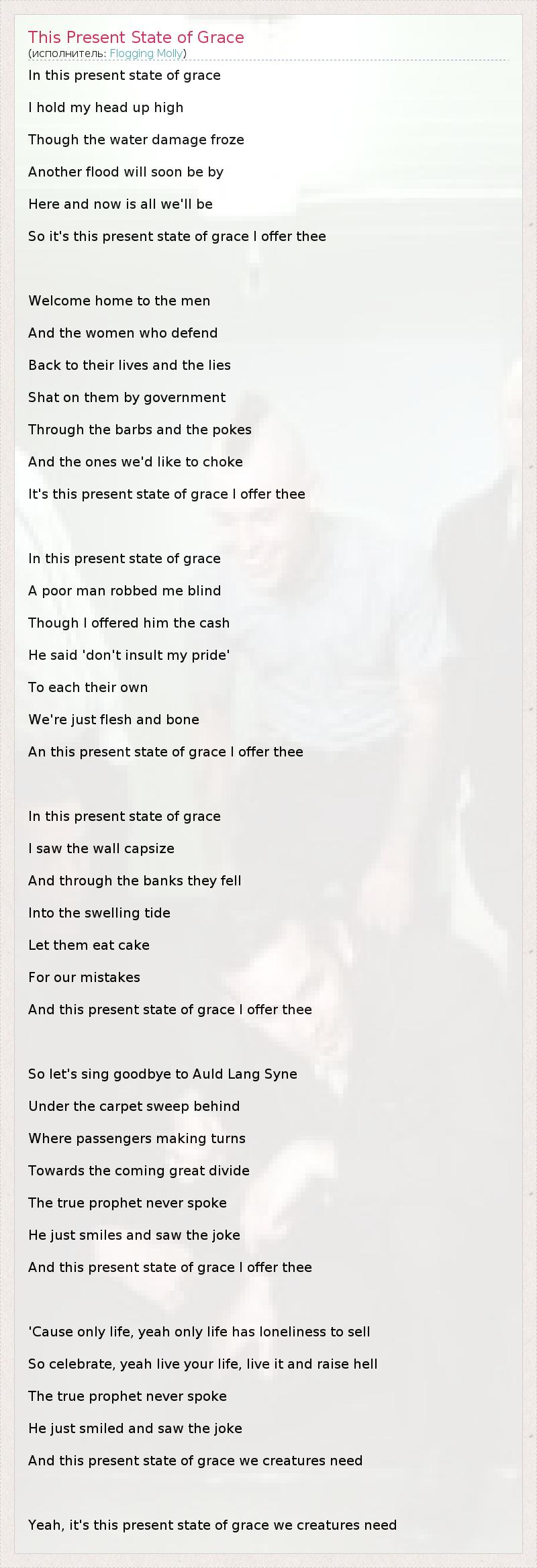 А как ты думаешь, о чем песня "This Present State of Grace" ?