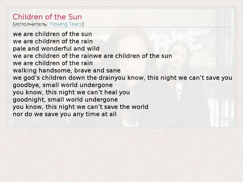 А как ты думаешь, о чем песня "Children of the Sun" ?
