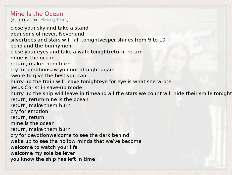 А как ты думаешь, о чем песня "Mine Is the Ocean" ?