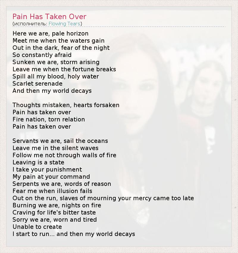 А как ты думаешь, о чем песня "Pain Has Taken Over" ?