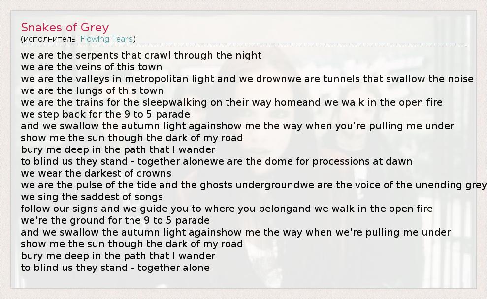 А как ты думаешь, о чем песня "Snakes of Grey" ?