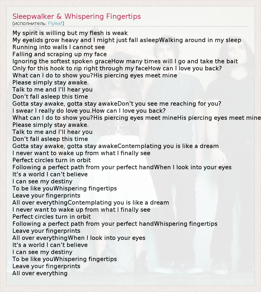 ГлавнаяИсполнителиFlyleafSleepwalker & Whispering Fingertips