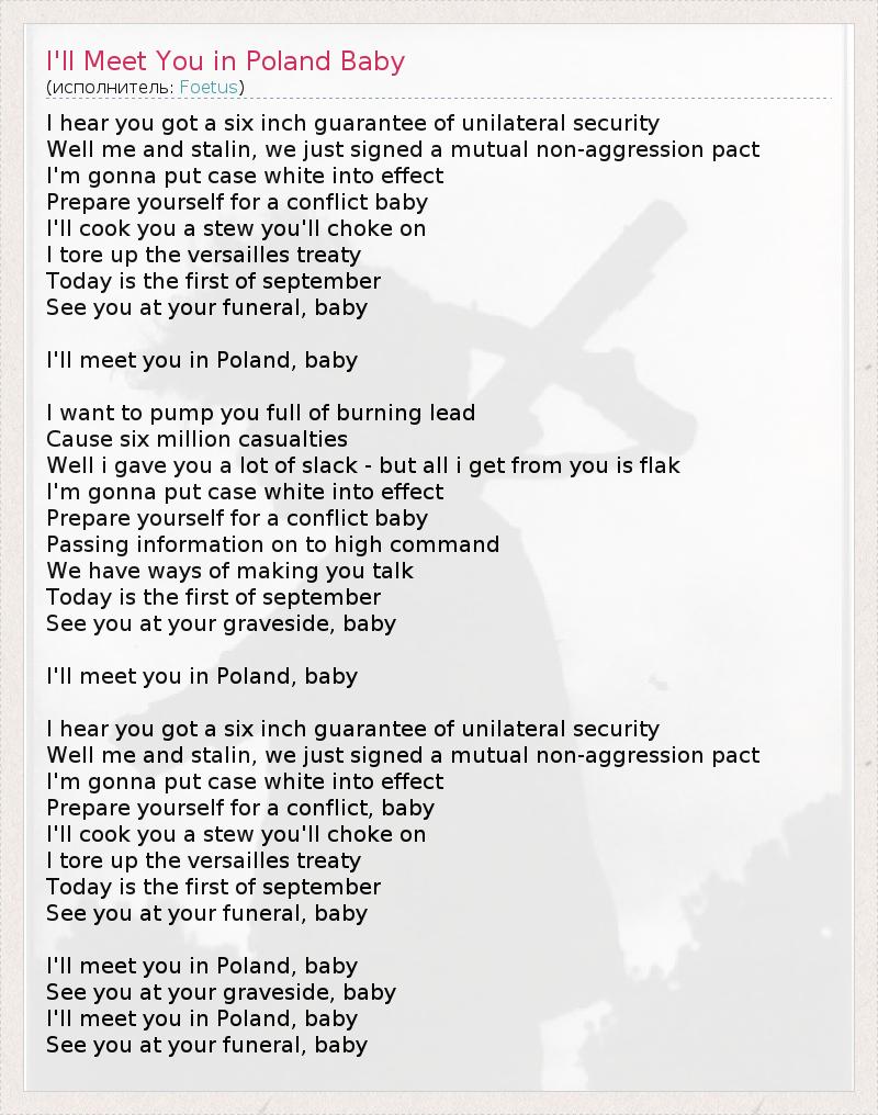 А как ты думаешь, о чем песня "I'll Meet You in Poland Baby" ?