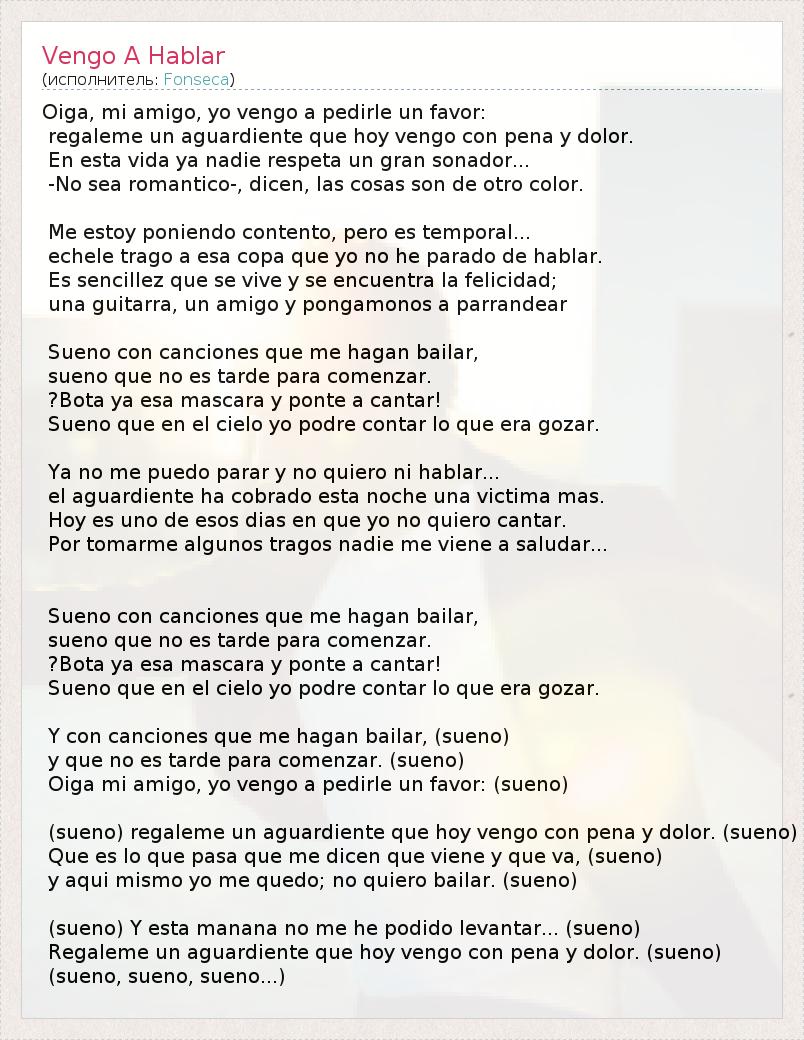 А как ты думаешь, о чем песня "Vengo A Hablar" ?