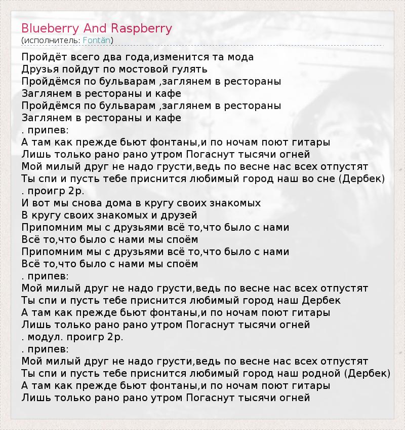 ГлавнаяИсполнителиFontänBlueberry And Raspberry