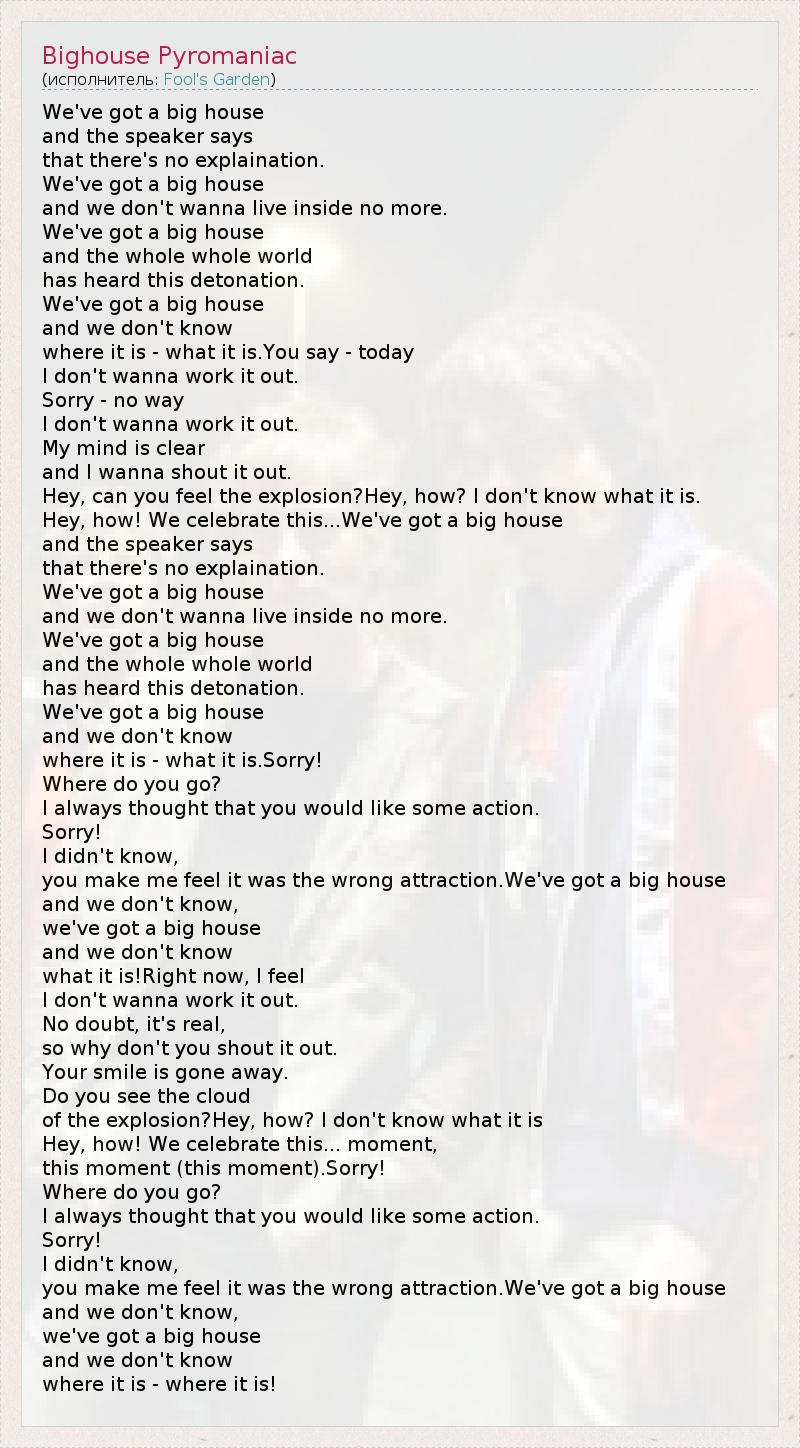 А как ты думаешь, о чем песня "Bighouse Pyromaniac" ?