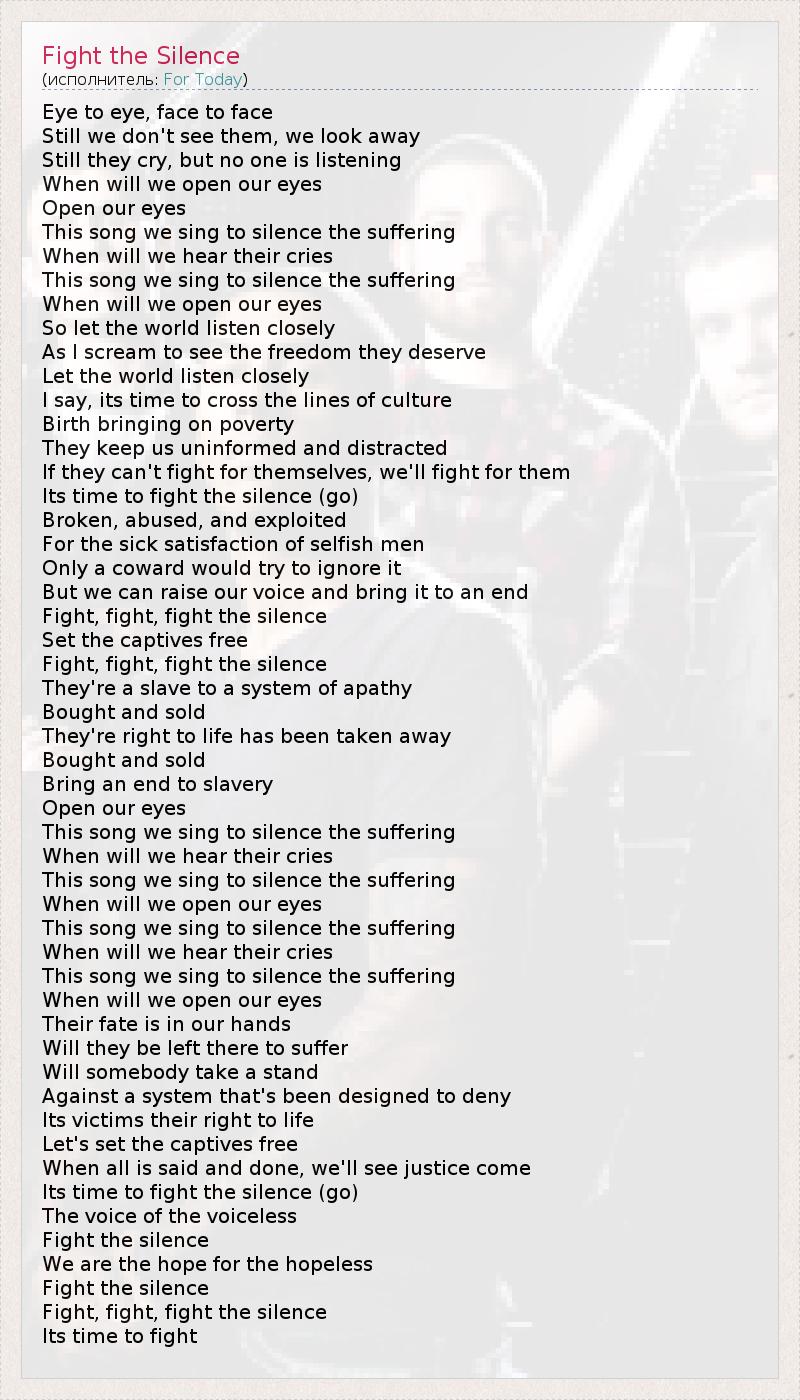 Fight, fight, fight the silence