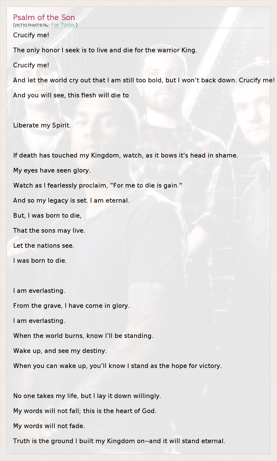 А как ты думаешь, о чем песня "Psalm of the Son" ?