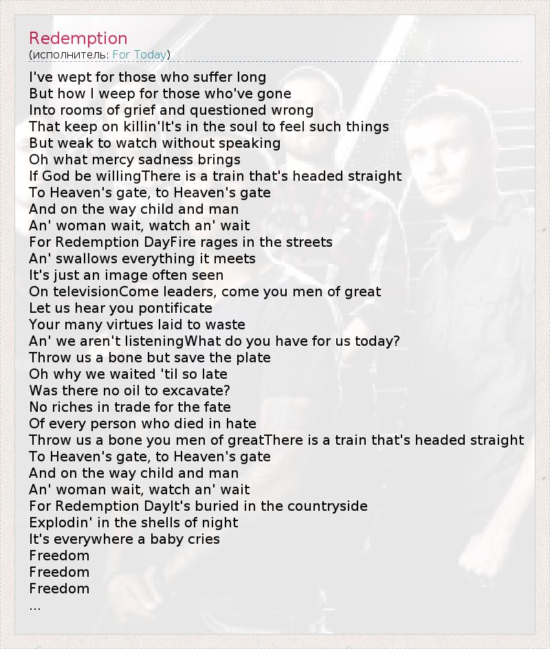 А как ты думаешь, о чем песня "Redemption" ?