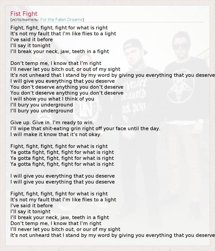 А как ты думаешь, о чем песня "Fist Fight" ?