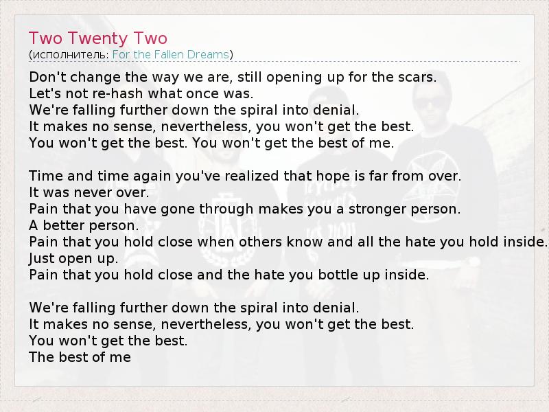 А как ты думаешь, о чем песня "Two Twenty Two" ?