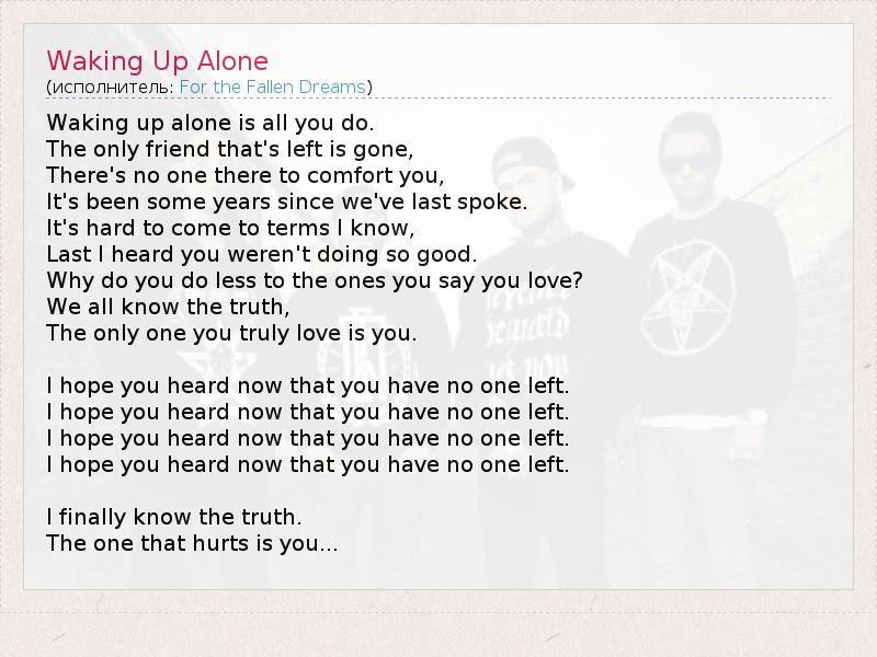 А как ты думаешь, о чем песня "Waking Up Alone" ?