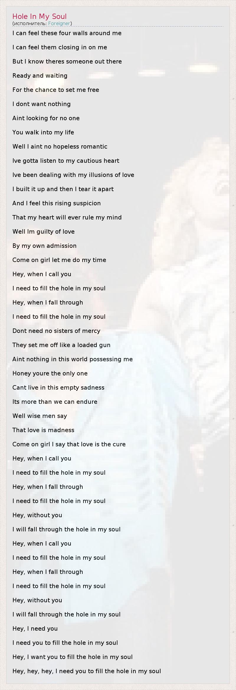 А как ты думаешь, о чем песня "Hole In My Soul" ?
