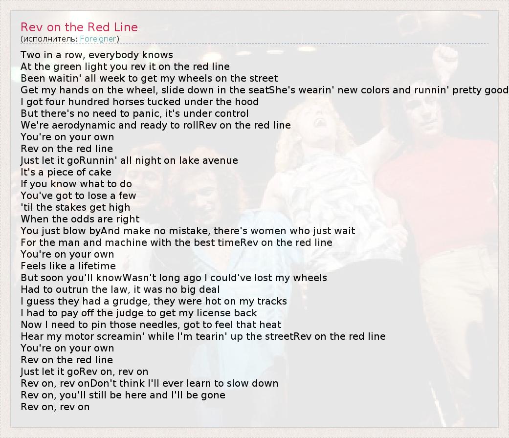А как ты думаешь, о чем песня "Rev on the Red Line" ?