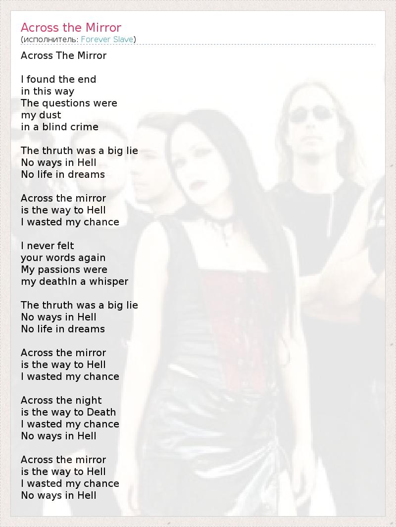 А как ты думаешь, о чем песня "Across the Mirror" ?