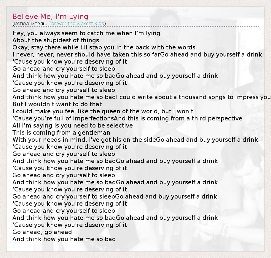 А как ты думаешь, о чем песня "Believe Me, I'm Lying" ?