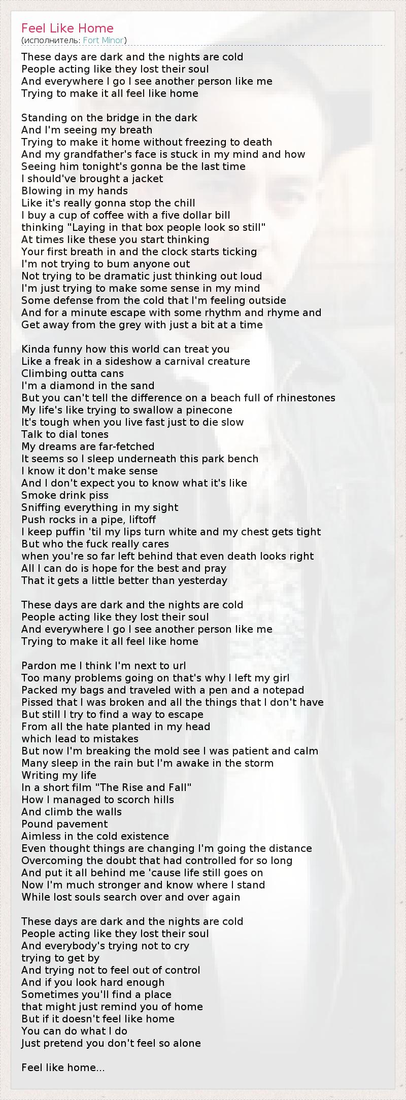 А как ты думаешь, о чем песня "Feel Like Home" ?