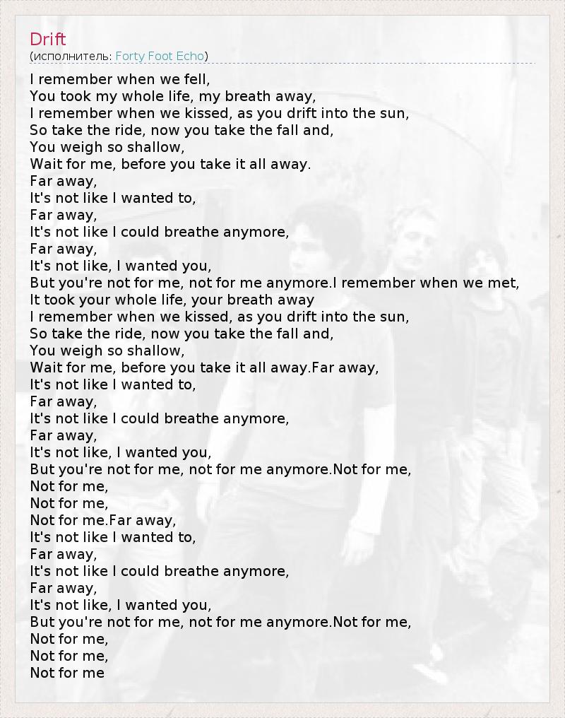 Это интересно:Forty Foot Echo is a five-man rock band from Canada, who released their self-titled debut album in 2003.Murray Yates, formerly of the band Templar, is the band's lead vocals, with Ryan Chamberlain as rhythm guitarist, Izzy Allen as bassist, Dayvid Swart on the drums and Shaun McDowell playing lead guitar.Shortly after the conclusion of their first tour, a complicated series of events caused the band to become estranged from Hollywood Records, which eventually led to a different line-up for their second album. Only Murray Yates remained on board, and was the one who reformed the band with the help of Shaun McDowell."Brand New Day", the band's most successful... продолжение