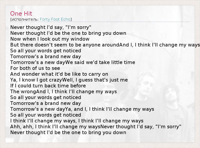 Ahh, ahh, I think I'll change my waysNever thought I'd say, "I'm sorry"