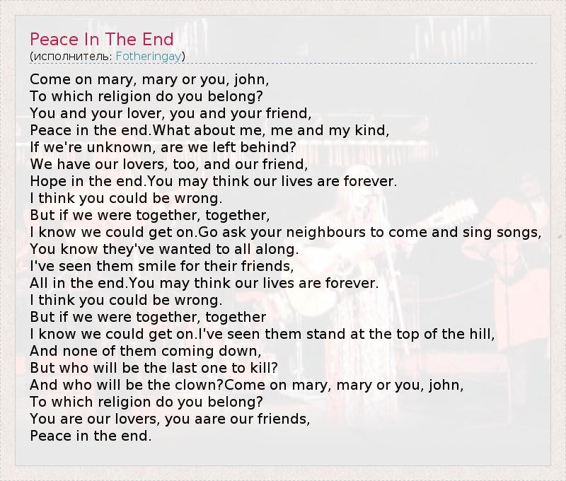 А как ты думаешь, о чем песня "Peace In The End" ?