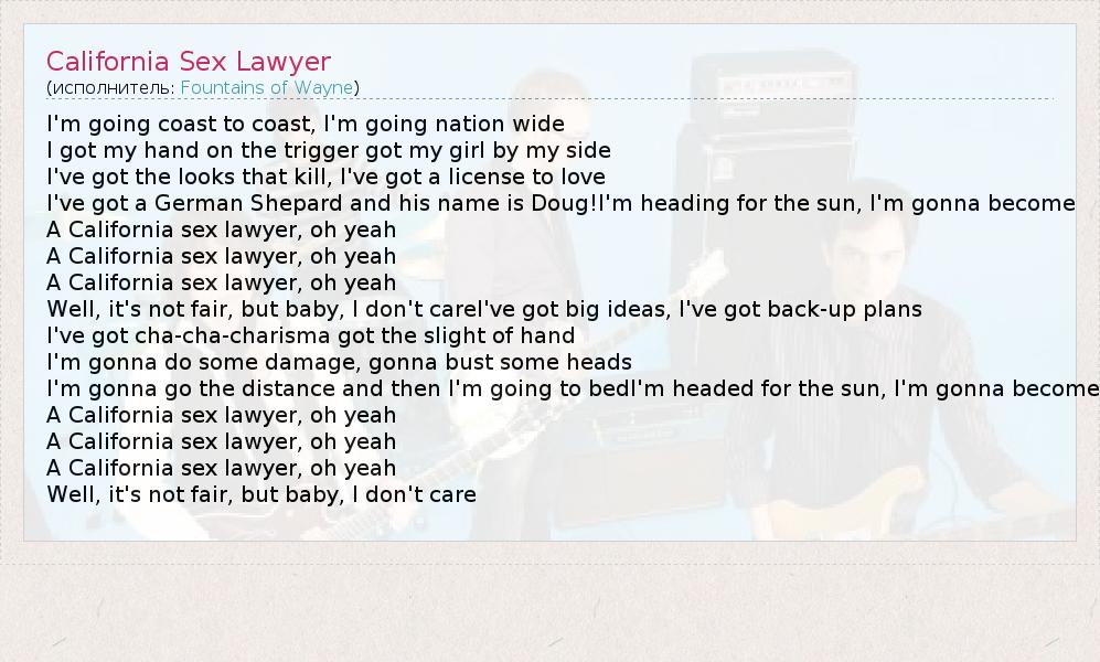 А как ты думаешь, о чем песня "California Sex Lawyer" ?