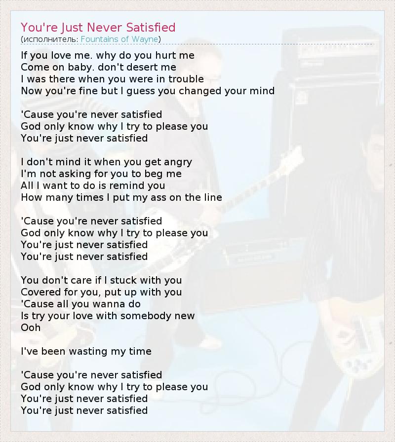 А как ты думаешь, о чем песня "You're Just Never Satisfied" ?