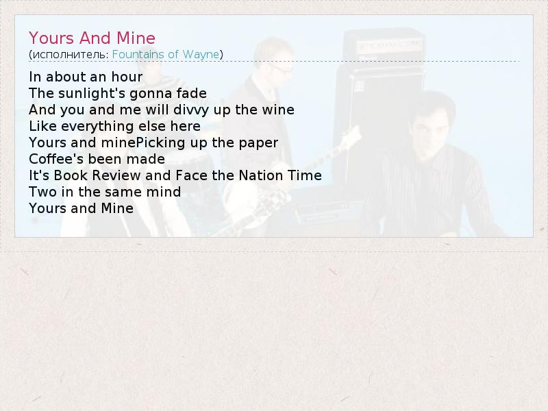 А как ты думаешь, о чем песня "Yours And Mine" ?