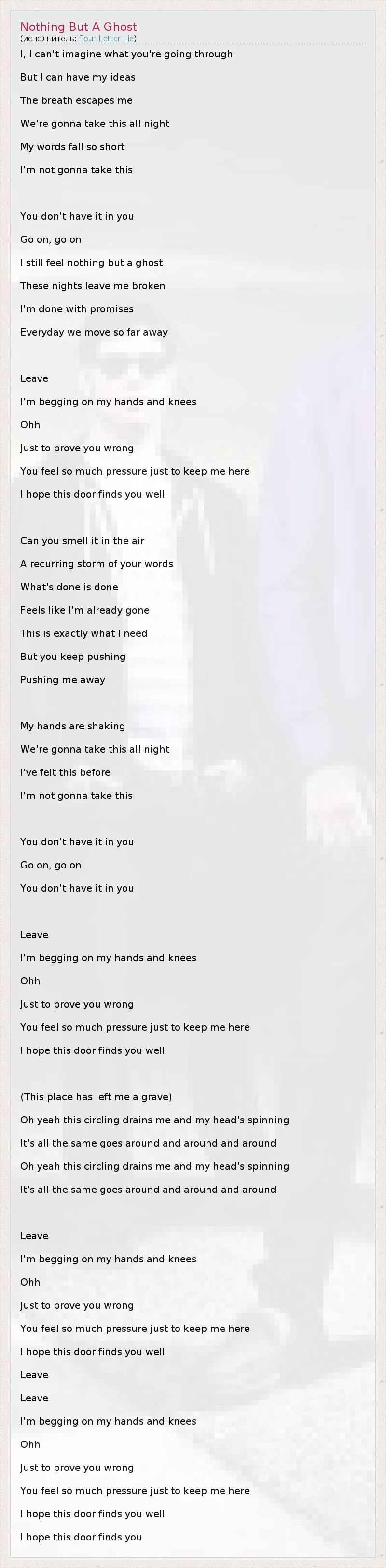 А как ты думаешь, о чем песня "Nothing But A Ghost " ?