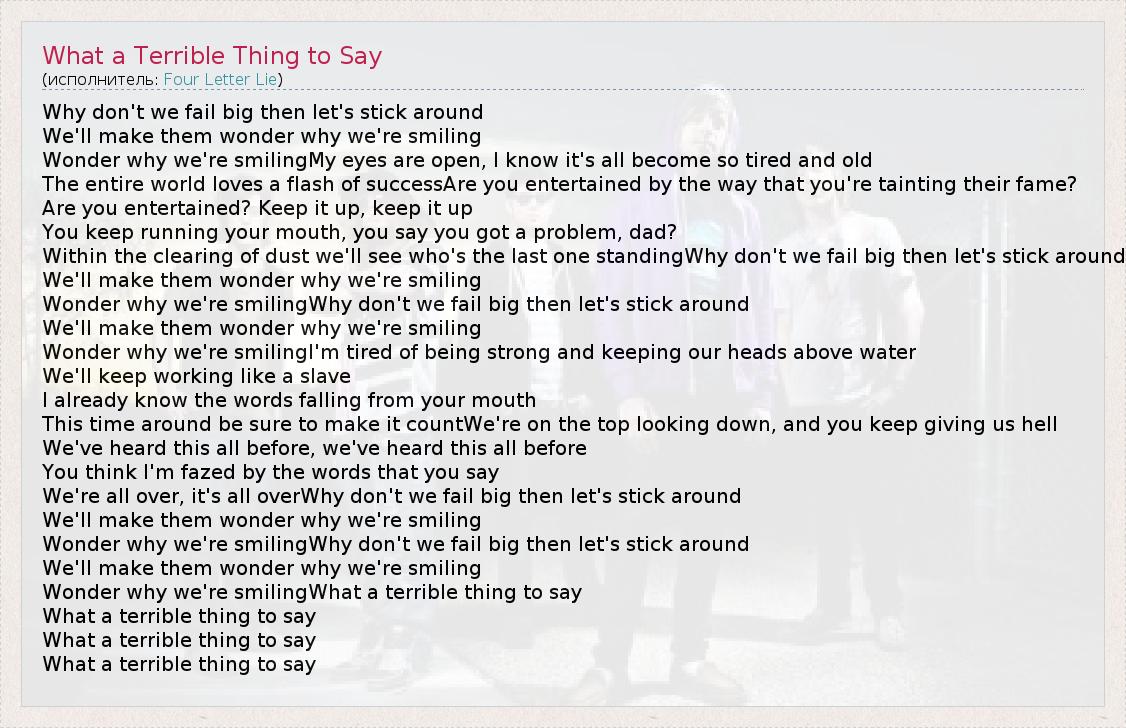 А как ты думаешь, о чем песня "What a Terrible Thing to Say " ?