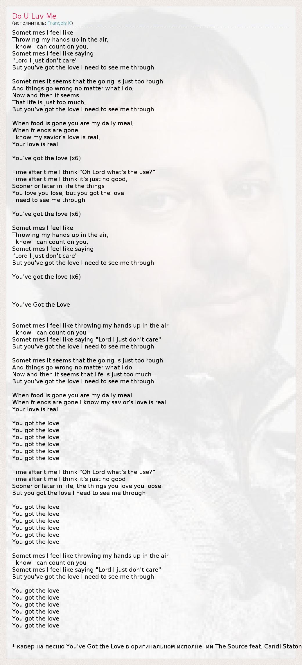А как ты думаешь, о чем песня "Do U Luv Me" ?