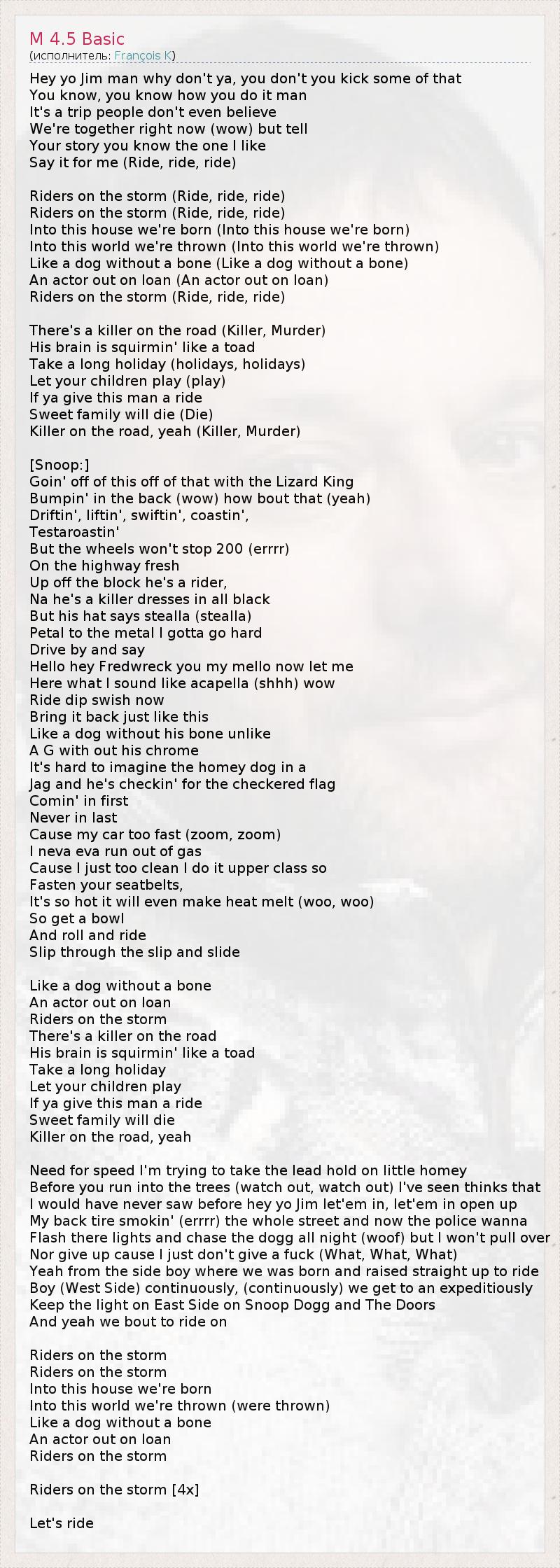 А как ты думаешь, о чем песня "M 4.5 Basic" ?