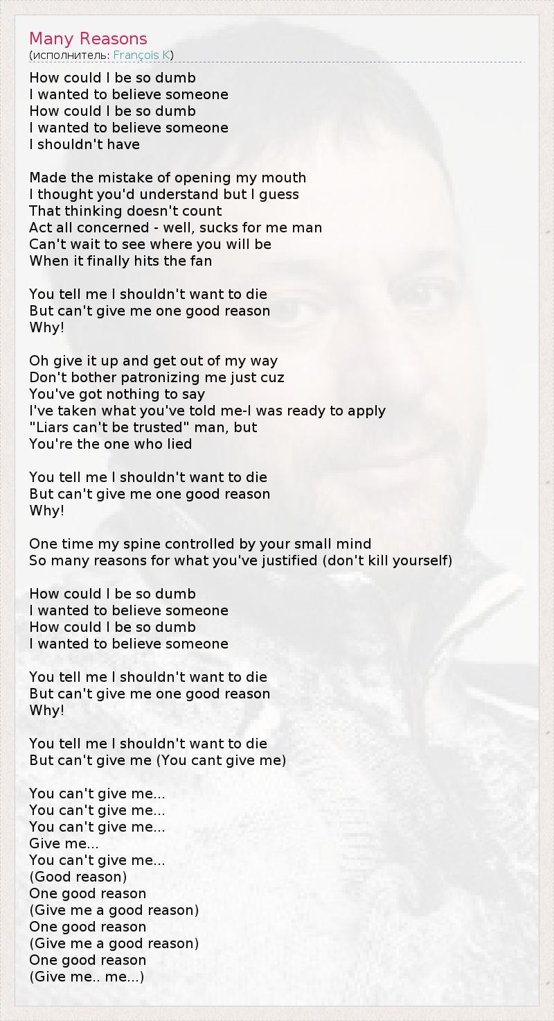 А как ты думаешь, о чем песня "Many Reasons" ?