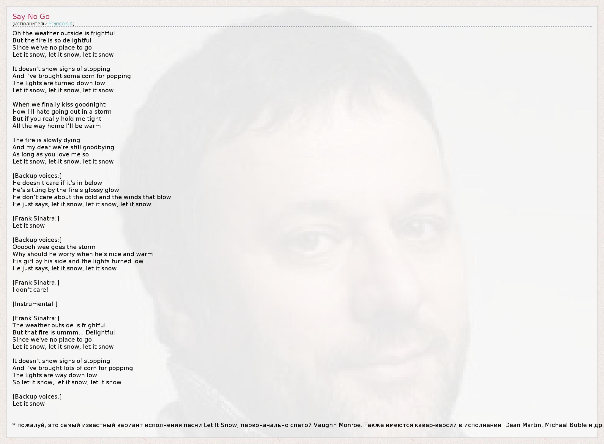 * пожалуй, это самый известный вариант исполнения песни Let It Snow, первоначально спетой Vaughn Monroe. Также имеются кавер-версии в исполнении  Dean Martin, Michael Buble и др.