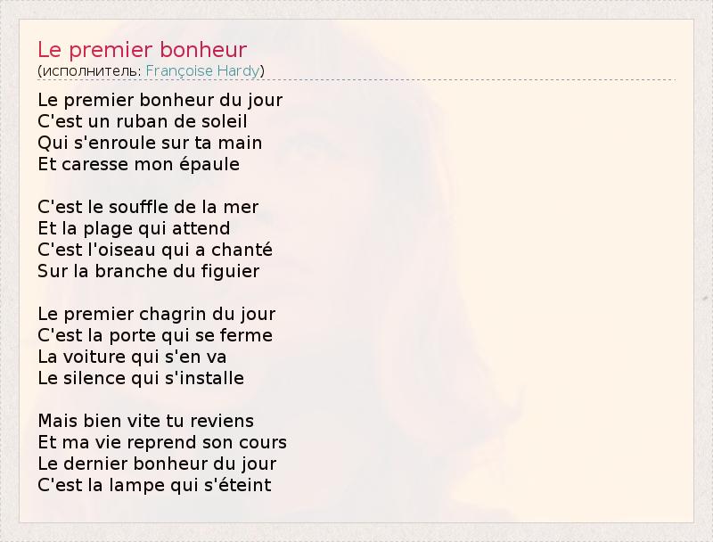 А как ты думаешь, о чем песня "Le premier bonheur" ?