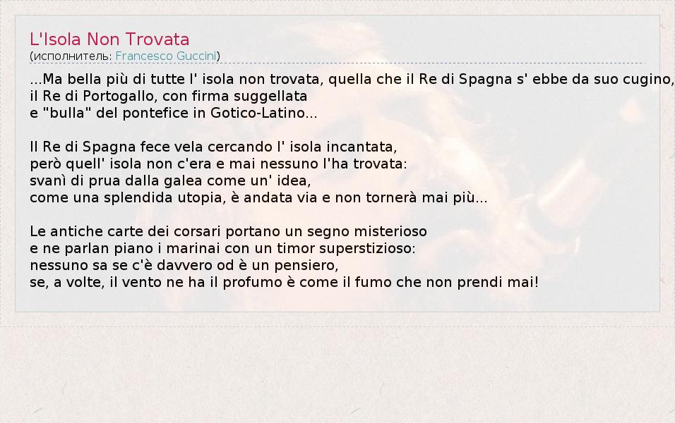 А как ты думаешь, о чем песня "L'Isola Non Trovata" ?