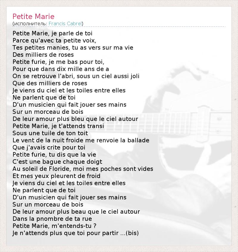 А как ты думаешь, о чем песня "Petite Marie" ?