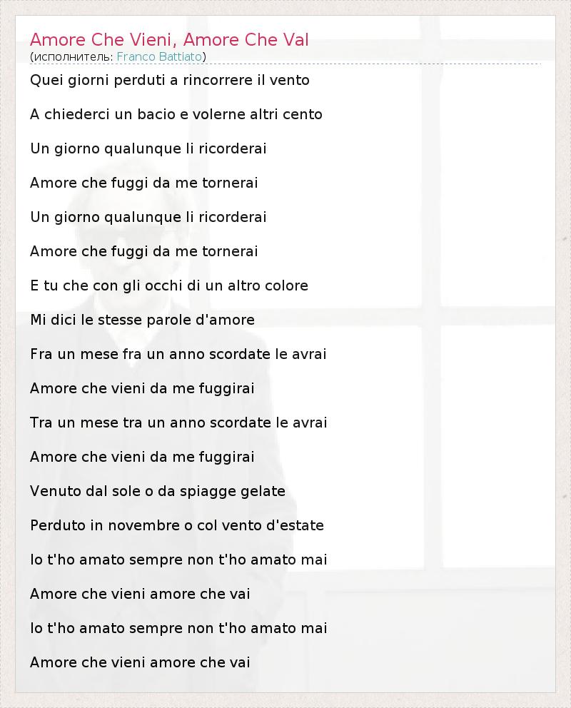 ГлавнаяИсполнителиFranco BattiatoAmore Che Vieni, Amore Che Val