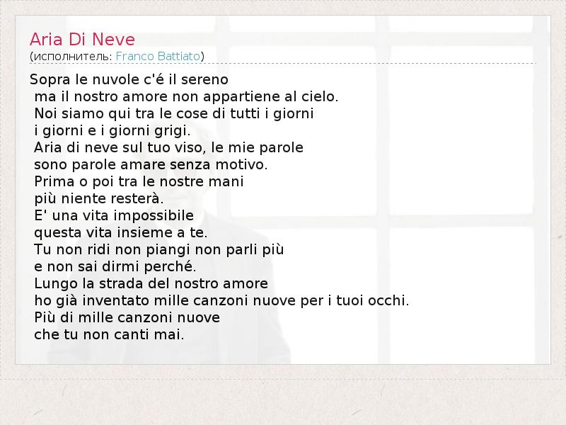А как ты думаешь, о чем песня "Aria Di Neve" ?