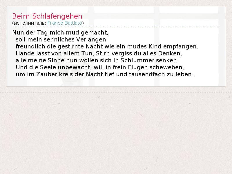 А как ты думаешь, о чем песня "Beim Schlafengehen" ?