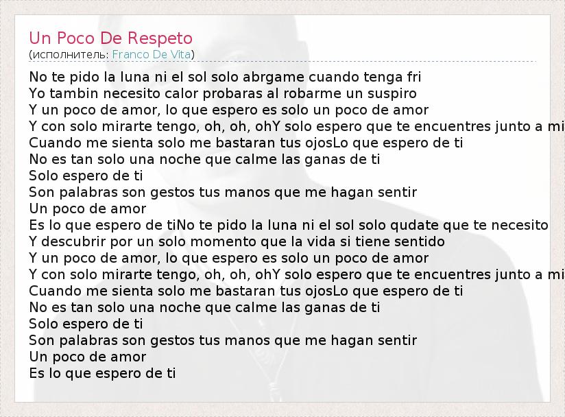 А как ты думаешь, о чем песня "Un Poco De Respeto" ?
