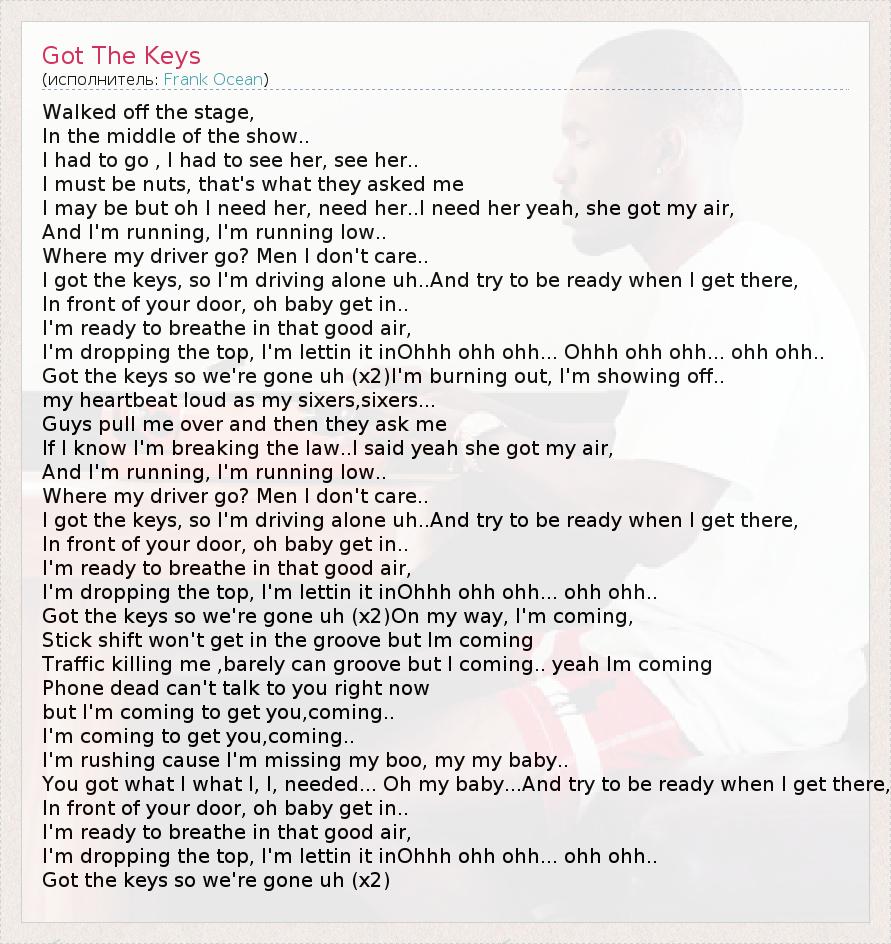 А как ты думаешь, о чем песня "Got The Keys" ?