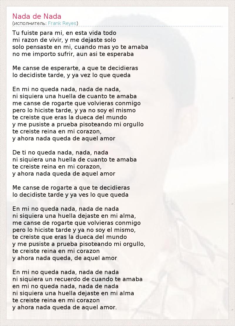 А как ты думаешь, о чем песня "Nada de Nada" ?