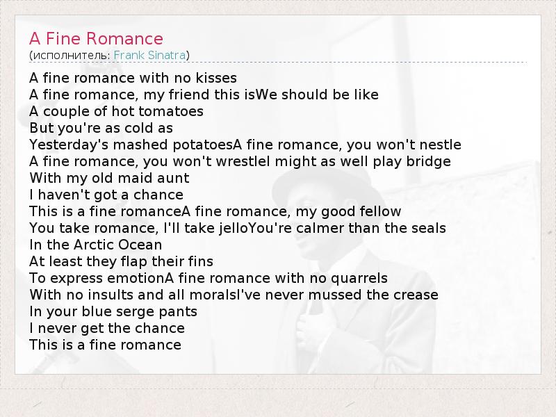 А как ты думаешь, о чем песня "A Fine Romance" ?